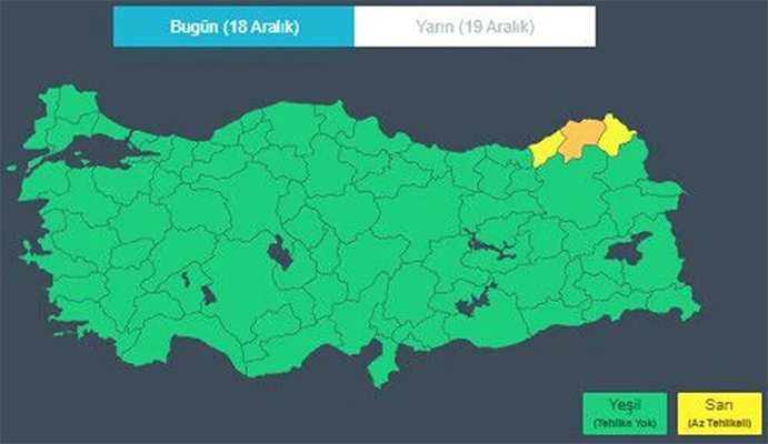 MGM tarafından Artvin için turuncu kodlu, Rize ve Ardahan için sarı kodlu kuvvetli yağış uyarısı yapıldı.