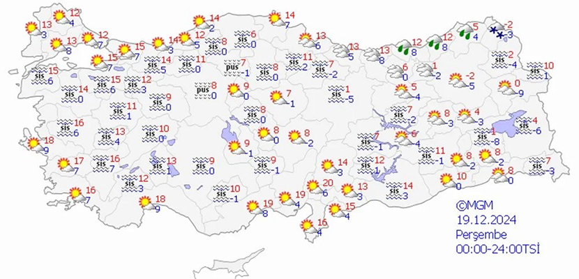19 ARALIK PERŞEMBE HAVA DURUMU