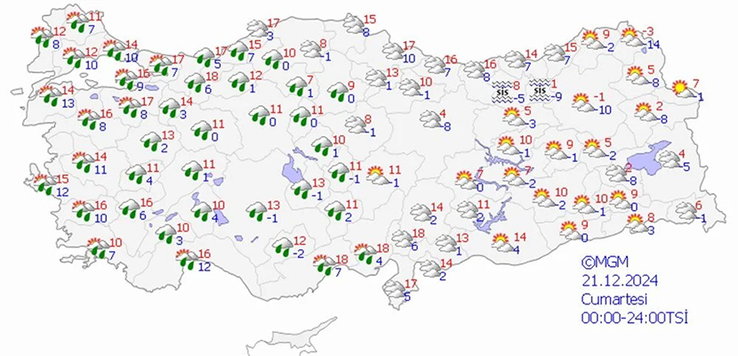 21 ARALIK CUMARTESİ HAVA DURUMU