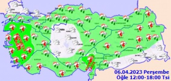 Meteoroloji Genel Müdürlüğü tarafından yapılan son değerlendirmelere göre: Ülkemiz genelinin parçalı ve çok bulutlu, Marmara, Ege, Akdeniz, İç Anadolu, Karadeniz, Doğu Anadolu'nun kuzey ve batısı ile Bitlis, Gaziantep, Kilis, Siirt, Adıyaman ve Diyarbakır çevrelerinin yağmur ve sağanak, yer yer gök gürültülü sağanak yağışlı geçeceği tahmin ediliyor. Yağışların; Kıyı Ege, İstanbul, Kocaeli, Sakarya, Yalova, Balıkesir, Çanakkale, Bursa, Manisa, Denizli, Uşak ve Osmaniye çevreleri ile Kahramanmaraş'ın batı ilçeleri, Adana'nın kuzeyi ve Hatay'ın batısının yerel olmak üzere kuvvetli olması bekleniyor.