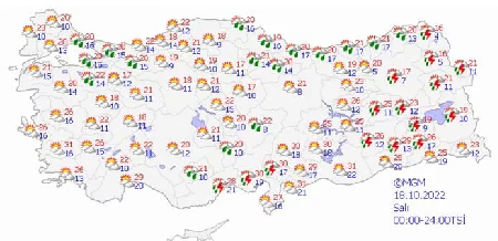 Parçalı ve çok bulutlu, doğusunun yerel olmak üzere aralıklı sağanak ve gök gürültülü sağanak yağışlı geçeceği tahmin ediliyor. Rüzgarın batısının iç kesimlerinde kuzey ve kuzeydoğu yönlerden kuvvetli (40-60 km/sa) olarak esmesi bekleniyor.