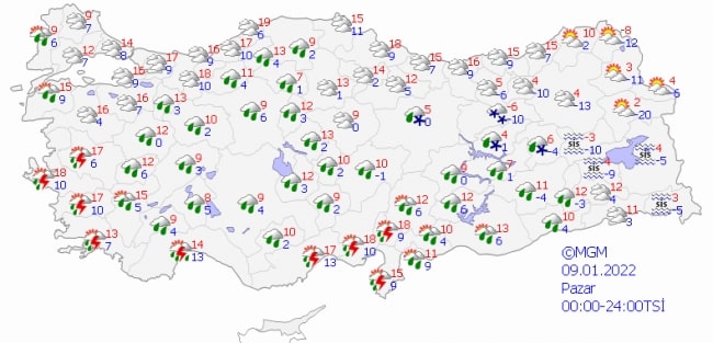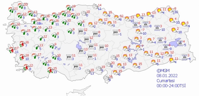 Türkiye Genel Müdürlüğü tarafından yapılan son değerlendirmelere göre yurt genelinin parçalı ve çok bulutlu, Marmara, Kıyı Ege, Batı Akdeniz (Burdur hariç), Batı Karadeniz kıyıları (Sinop hariç), Manisa ve Konya çevreleri ile Doğu Akdeniz’in Toroslar kesiminin yağışlı geçeceği tahmin ediliyor.
