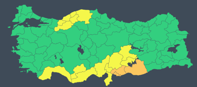Meteoroloji Genel Müdürlüğü yılın son haftasının ilk günü için 18 kenti "sarı" ve "turuncu" kodla uyardı.