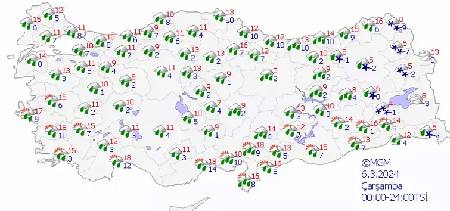 Günün hava durumu tahminleri Meteoroloji Genel Müdürlüğü tarafından yayımlandı. Yapılan son tahminlere göre, ülkemiz genelinin çok bulutlu, Van ve Iğdır dışında yurt genelinin yağışlı geçeceği tahmin ediliyor. Genellikle yağmur ve sağanak, İç Ege’nin yüksekleri, Doğu Karadeniz’in iç kesimleri ile Doğu Anadolu’nun kuzey ve doğusunda karla karışık yağmur ve kar şeklinde görülmesi beklenen yağışların; Doğu Akdeniz ile Muğla, Antalya, Kayseri, Sivas, Erzincan, Tunceli ve Bingöl çevrelerinde yerel kuvvetli olması bekleniyor. Doğu Karadeniz’in iç kesimleri ile Doğu Anadolu’nun kuzey ve doğusunda çığ tehlikesi bulunmaktadır.