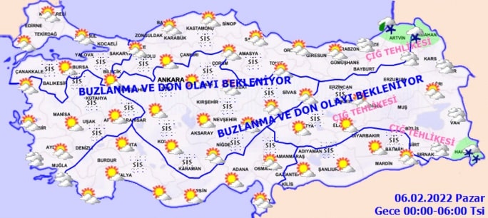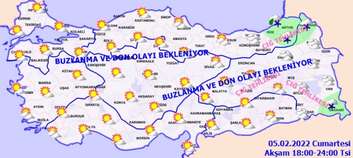 Doğu Karadeniz'in iç ve yüksek kesimleri ile Doğu Anadolu'da yüksek kar örtüsüne sahip eğimli bölgelerde çığ riski bulunmaktadır. İç ve doğu kesimlerde buzlanma ve don olayı bekleniyor.