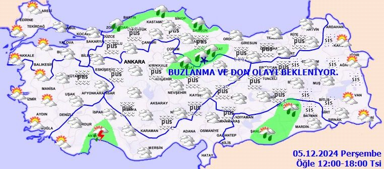 Meteoroloji, iç ve doğu bölgelerde buzlanma, don ve sis olaylarına karşı vatandaşları uyardı. Yüksek kesimlerde yaşayanlar ve yollarda olan sürücüler, buzlanma riskine karşı dikkatli olmalı.