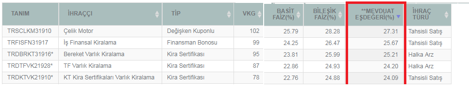 Aşağıdaki tabloda 3.12.2018 itibariyle tahvil bono piyasasında işlem gören şirket tahvillerinin mevduat eşdeğerleri hesaplanmaktadır.