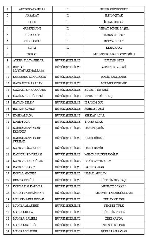 Buna göre 31 Mart 2024 Mahalli İdareler Seçimlerinde 2. etap olarak adaylıkları kesinleşen 8 il, 40 büyükşehir llçe, 7 ilçe belediye Başkan adayları şu şekilde oluştu: