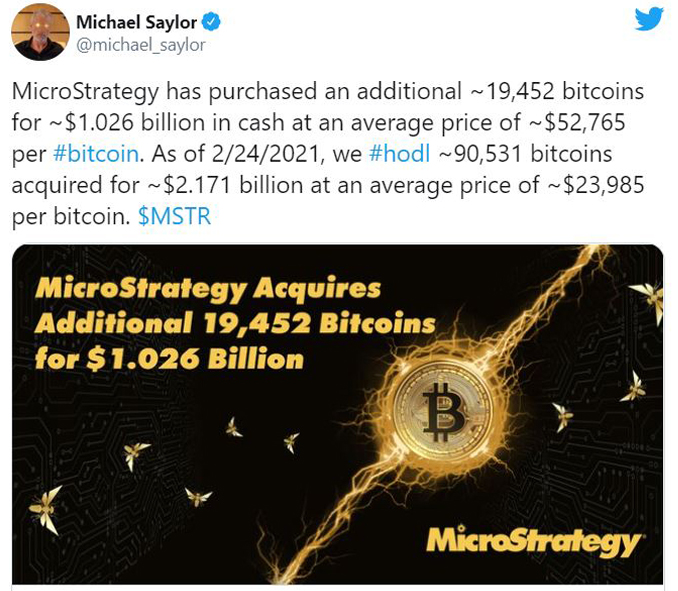 Geçtiğimiz yılın son günlerinde ABD tabanlı yazılım şirketi MicroStrategy, Bitcoin satın alabilmek için 650 milyon dolarlık tahvil satışına gitmişti. Bu satışla 30 bine yakın Bitcoin'i hesabına ekleyen firma, böylece cüzdanındaki toplam Bitcoin miktarını 90 bin 500'e yükseltmiş oldu.