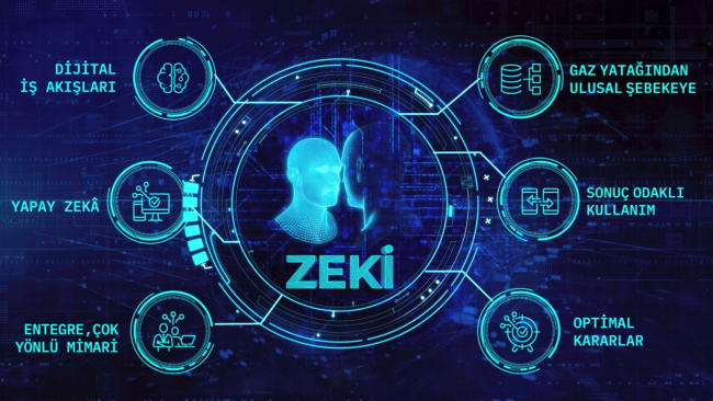 En gelişmiş dijital ikiz teknolojilerini kullanan ZEKİ`nin, doğal gaz yatağından dağıtım şebekesine kadar üretim ve akış süreçlerini uçtan uca modelliyor. Yönetim desteği verip üretim optimizasyonu sağlıyor. Böylece ZEKİ, operatörlerin çalışma ve karar alma süreçlerini daha etkin ve verimli hale getiriyor. Yapay zekayla donatılan ZEKİ, Karadeniz`in tüm zorluklarına karşı doğru planlamayla hareket edilmesini sağlıyor.