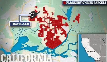 Wall Street Journal, Flannery'nin 2018'den bu yana Travis Hava Kuvvetleri Üssü çevresinde yaklaşık 52.000 dönüm tarım arazisi satın aldığını söylüyor. Habere göre, hükümet yetkilileri şirketin arkasında yabancı çıkarların olabileceği endişesiyle satın alımları araştırmaya başladı.