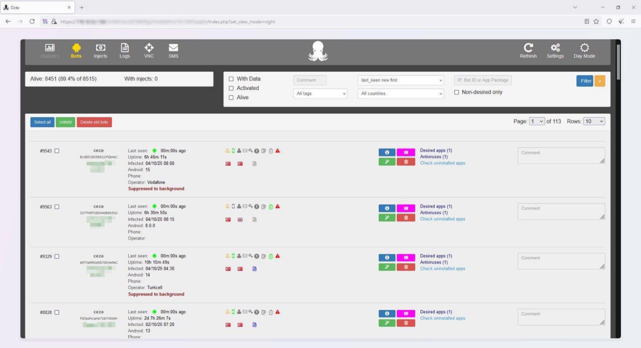 Operasyonlar sırasında ekipler aramalarda çok sayıda dijital materyal, kripto para cüzdanı, nakit para ve döviz ele geçirildi. Gerçekleştirilen operasyon neticesinde, oltalama saldırılarında ve dolandırıcılık faaliyetlerinde kullanıldığı belirlenen 318 internet sitesi ele geçirilerek erişime kapatıldı. Ayrıca, siber suç örgütünün mobil telefonlara yüklediği zararlı yazılımları yönetmek amacıyla kullandığı özel kontrol paneli de ele geçirildi. Bu panel vasıtasıyla telefonların tamamen kontrol altına alındığı, kullanıcıların bilgisi dışında üçüncü kişilere SMS gönderilebildiği, gelen ve giden çağrıların yönlendirilebildiği, cihazın kamerası ve ekranının uzaktan izlenebildiği ve anlık konum bilgilerinin takip edilebildiği tespit edildi.