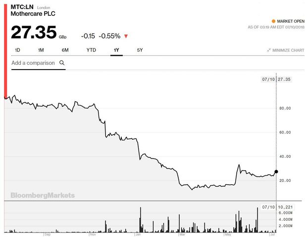 2017 sonlarında Londra Borsası'nda 80 sterlinin üzerinde işlem gören Mothercare hisseleri son dönemde 30 sterlinin altına dek inmişti