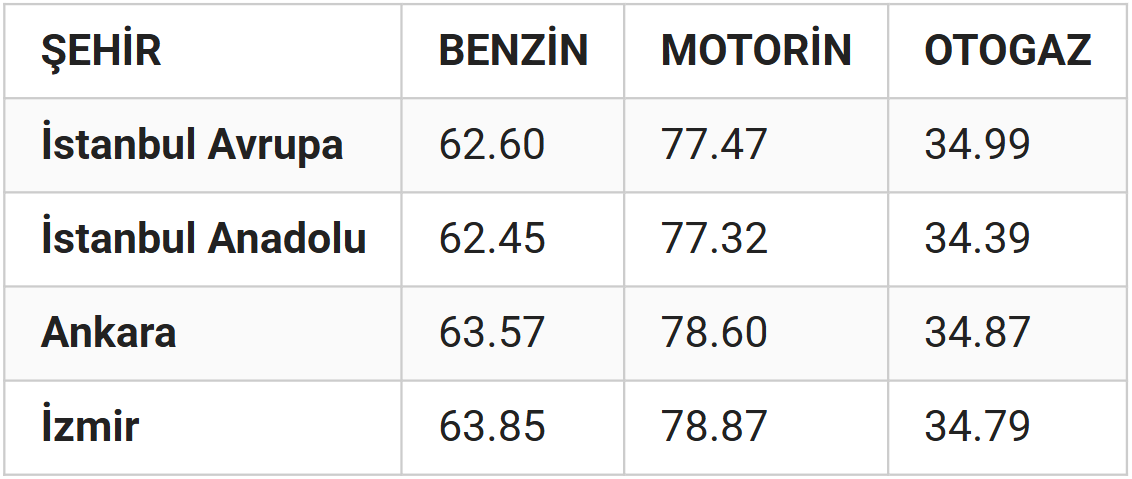 7,67 liralık zammının pompaya yansıması durumunda motorinin litresi özellikle Doğu'daki şehirlerde 90 lira seviyesine yaklaşacaktı. Türkiye'de en pahalı akaryakıtın satıldığı Hakkari'de 1 litre motorinin fiyatı 80 lira 33 kuruş seviyesinde. Hakkari'de benzinin litresi ise 65 lira 20 kuruştan satılıyor.