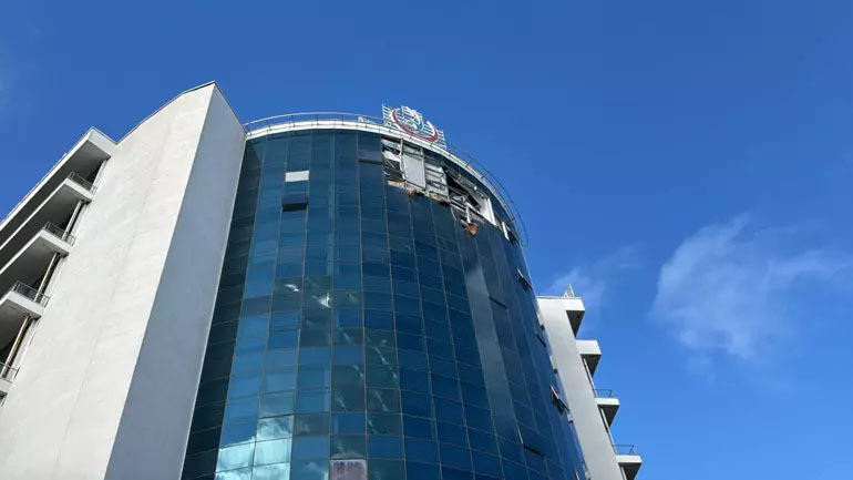 Helikopterin çarptığı ve toplantı salonunun bulunduğu en üst katta camların kırıldığı ve hasar oluştuğu görüldü. Kaza sırasında toplantı salonunun boş olduğu bildirildi.