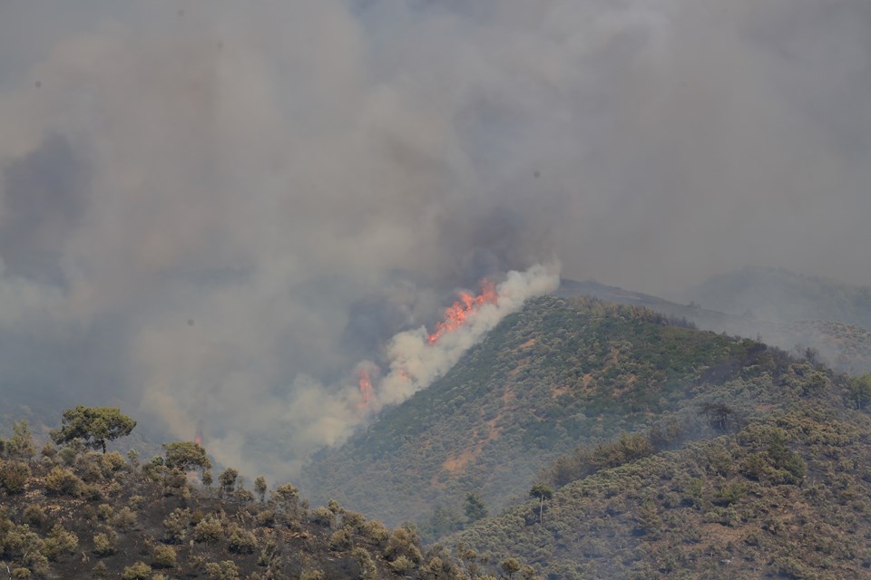 Selimiye Mahallesi'ndeki zeytinlikte henüz belirlenemeyen nedenle başlayan yangın, ormanlık alana sıçradı.