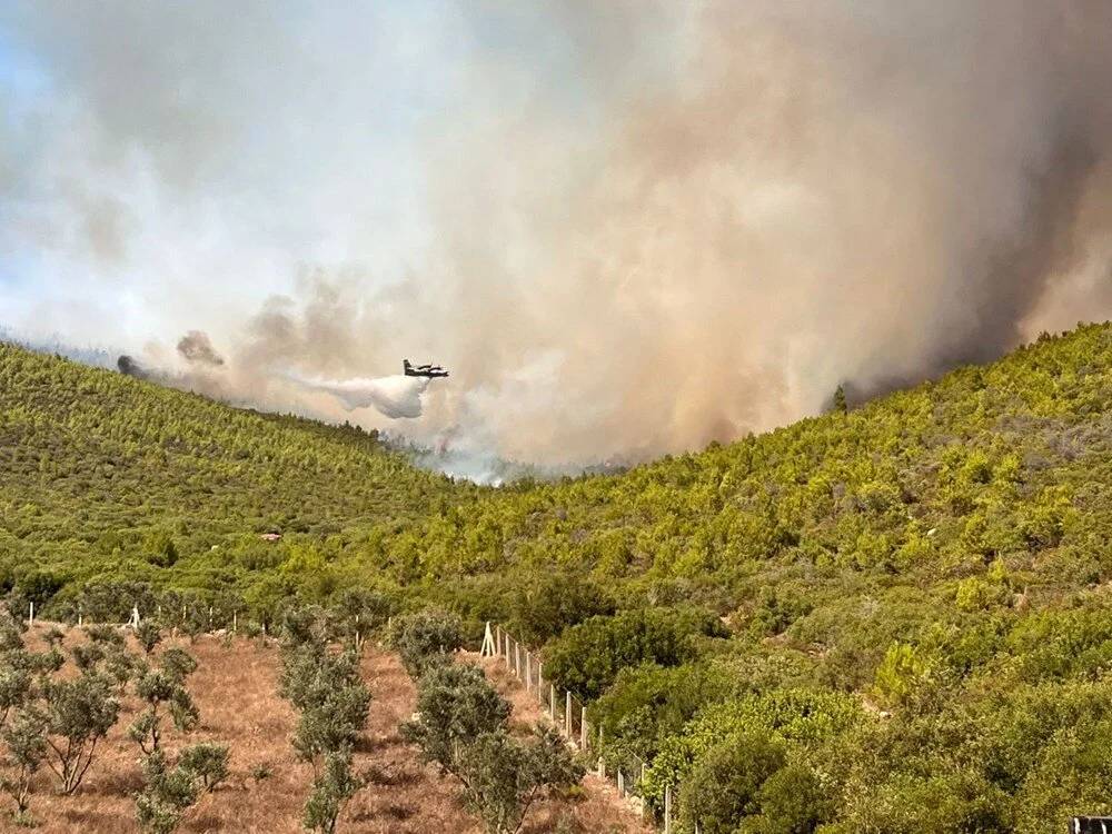 Milas'a bağlı Boğaziçi bölgesinde başlayan yangının rüzgarın da etkisiyle Bodrum Güvercinlik istikametine ilerlediği bildirilirken, alevlerin şu an için yerleşim yerlerini tehdit etmediği belirtildi.