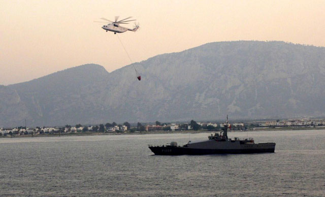 Milli Savunma Bakanlığı'nca Muğla'daki yangın söndürme çalışmalarında ihtiyaç halinde halkı denizden tahliye etmek için bir karakol botu ve çıkarma gemisi sevk edildiği duyuruldu.