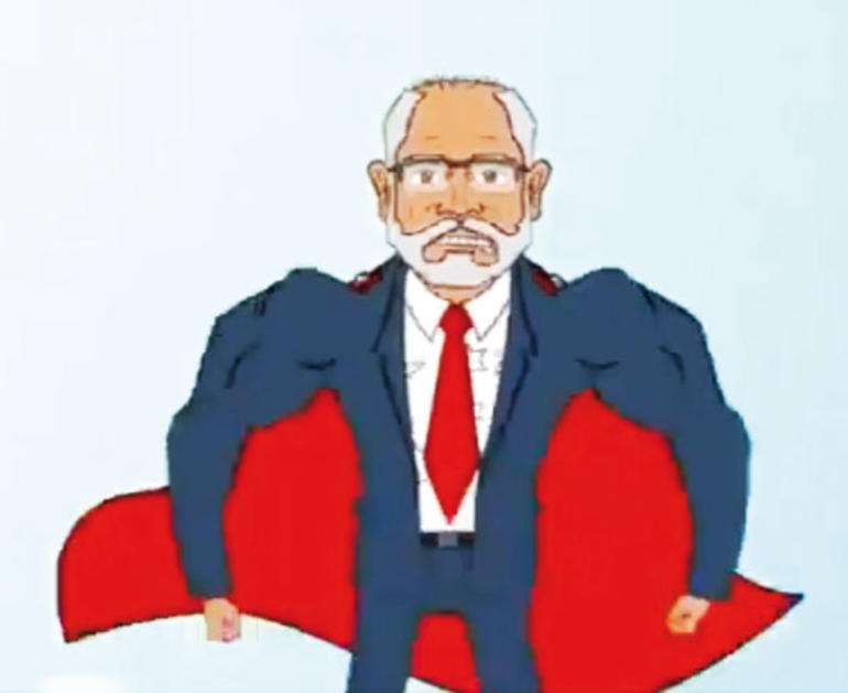 Karamollaoğlu’nun Süpermen rolünde olduğu ve Erdoğan’ın kullandığı Türkiye yazılı aracı uçurumdan düşmekten kurtardığı animasyon da sosyal medyada paylaşıldı.