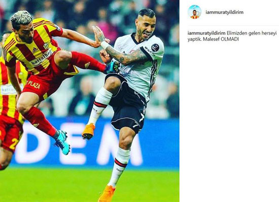 Instagram hesabından Quaresma'ya yaptığı faulün fotoğrafını paylaşan Murat Yıldırım, altına "Elimizden gelen her şeyi yaptık. Maalesef olmadı" ifadelerini kullandı. Murat yıldırım, kısa sürede yoğun tepki çeken bu paylaşımı sildi.