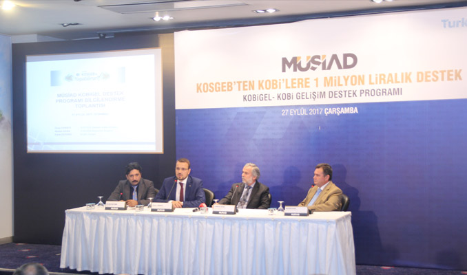 MÜSİAD Genel Merkez’de gerçekleşen “KOSGEB’den 1 Milyon Liralık Destek” programında; KOSGEB İkitelli Müdürü Özay Cebeci, KOSGEB Başkan Müşaviri Nedim Kara, KOBİ Uzmanı Fatih Öztürk ve MÜSİAD Proje, Yatırım ve Destekler Kurulu Başkanı Yunus Aksu birer sunum gerçekleştirdi. Cebeci, üretim ve ihracatta teknoloji seviyesi yüksek, katma değerli ürünlerin ve KOBİ’lerin payının artırılması amacıyla hazırlanan KOBİ Gelişim Destek Programının (KOBİGEL) tanıtımını yaptı.