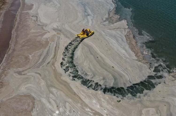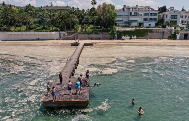 Marmara Denizi'ni kaplayan salyaların temizlenmesi için salı günü 7 ilde çalışma başlatılmıştı. İstanbul'da bugün güneşli havayı fırsat bilenler, salyaya rağmen denize girdi. Bir yandan denize girenler, bir yanda da deniz salyası ilginç görüntüler oluşturdu.