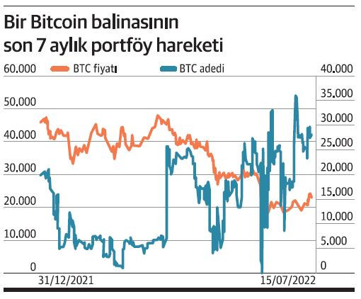 Açıklamaların her bir cümlesi buram buram spekülasyon, hatta manipülasyon kokuyor. Gelin size Elon Musk’ın sıcak cüzdanının adresini net olarak bilmesek de Musk tarzında bir balinanın 2021 sonundan bugüne gerçek rakamlarla BTC portföyündeki hareketlerine bakalım (Aşağıdaki grafikten görebilirsiniz). Bitcoin balinası cüzdanının adresi bc1q4jchcr- 7nla277su5lpjzttxp3xg5j8wds5lcwg. PAHALIDAN SAT UCUZDAN FAZLASINI KOY Bu cüzdan 31 Aralık 2021’de piyasa değeri (46 bin dolarlık BTC kurundan) 919 milyon dolar olan 19 bin 976 adet BTC’ye sahipti. İlerleyen 13 gün içerisinde portföyündeki BTC’lerin yüzde 75’ini satan bu cüzdan, 625 milyon dolar nakde geçti. Ardından portföyünü yeniden 2.4 katına 37 bin dolar ortalama maliyetten çıkardı. Bu 8 günde gerçekleşti. Ve bunun için harcadığı para sadece 284 milyon dolardı. Hesabından tuttuğu nakdi bir kenara yazalım 341 milyon dolar. Aynı balina yeniden satmaya başladı ve portföyünün bu defa yarısını sattı. Bu da 5 günde gerçekleşti. Nakde geçirdiği miktar 238 milyon dolar. Bu süreç böyle sürekli olarak devam etti. Her gün onlarca agresif alım-satımlar yaşandı. Özetlemek gerekirse bu Bitcoin balinası bugüne kadar geçen sürede Bitcoin’in 34 bin dolardan 44 bin dolar gittiği şubat-mart döneminde portföyünü 8000 Bitcoin’den 952 Bitcoin’e düşürdü. Ardından 46 bin dolar gitmeden önce de 25 bin Bitcoin’e çıkardı. BTC 20 bin doların altında inmeden önce de 4 Bitcoin’e kadar indi. Bugün ise yeniden 28 bin Bitcoin’e sahip. Kenarda milyar dolardan fazla nakdi bulunan bu balina, 229 milyon dolar daha ucuza ilk portföyünden çok daha fazlasına sahip.