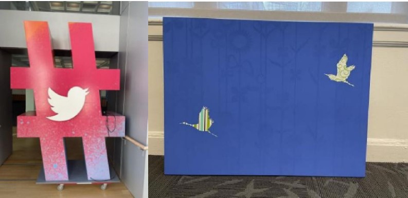 ABD merkezli çevrimiçi müzayede sitesi Heritage Global Partners web sitesinde açık arttırma gününe kadar tanıtıma sunulan 584 parçanın arasında Twitter’ın eski logosu kuş modelinde bir sehpa, neon ışıklarla yapılmış kuş logosu, ofis mobilyaları, müzik aletleri, ofis mutfak aletleri ve beyaz eşyaları, sanat eserleri ve ofis binasının üstündeki büyük mavi kuş logoları bulunuyor.