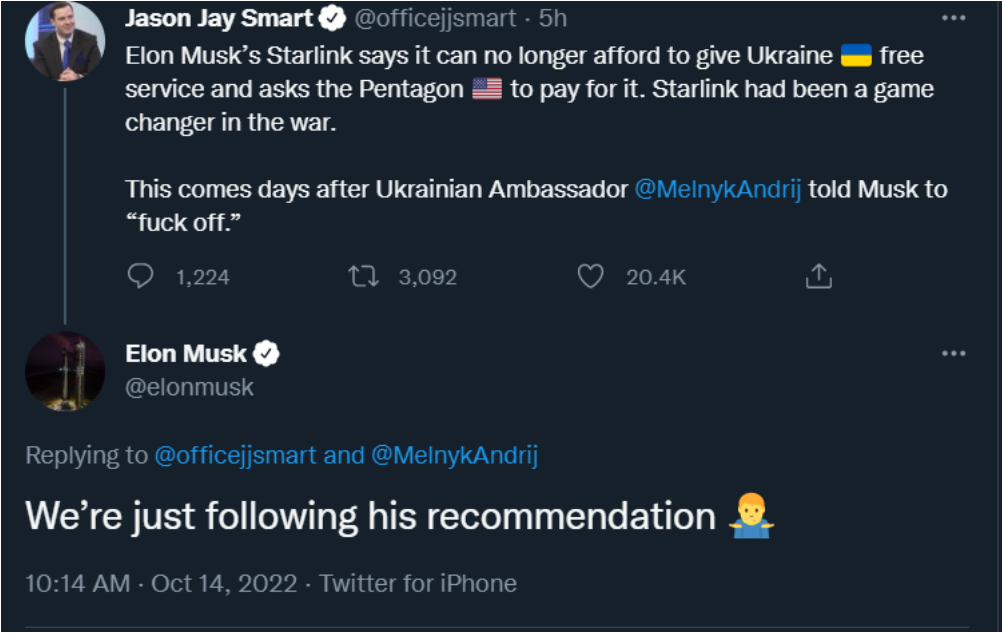 Hatta Ukrayna’nın Almanya Büyükelçisi Andrij Melnyk, Musk’a “s…. ….t” diyerek öfkeyle karşılık verdi.