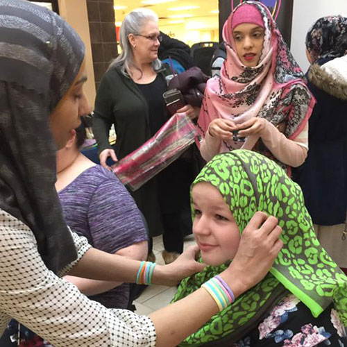 Bazı Kanadalı kadınların, örttükleri başörtülerini satın aldıkları görülürken, bazılarına da örtüleri hediye edildi.