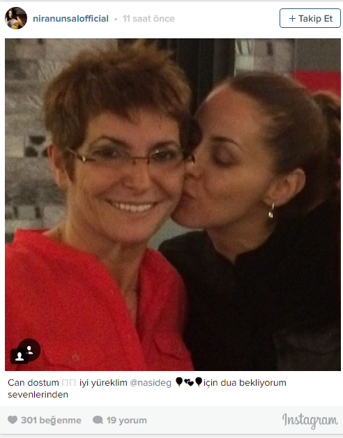 Kötü haberi alan şarkıcı Niran Ünsal ilk uçakla yakın arkadaşı Göktürk'ün yanına gitti. Birlikte çekildikleri bir fotoğrafı Instagram hesabından paylaşan 40 yaşındaki Ünsal altına şu notu düştü: 'Can dostum, iyi yüreklim Naşide Göktürk için sevenlerinden dua bekliyorum'