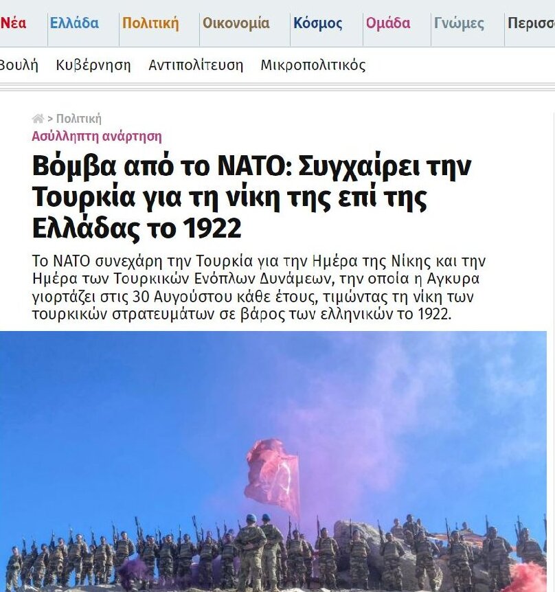 Türkiye için büyük bir öneme sahip olan 30 Ağustos Zafer Bayramı vesilesiyle NATO’nun dün resmi sosyal medya hesabından yaptığı paylaşım Yunanistan’da krize sebep oldu.