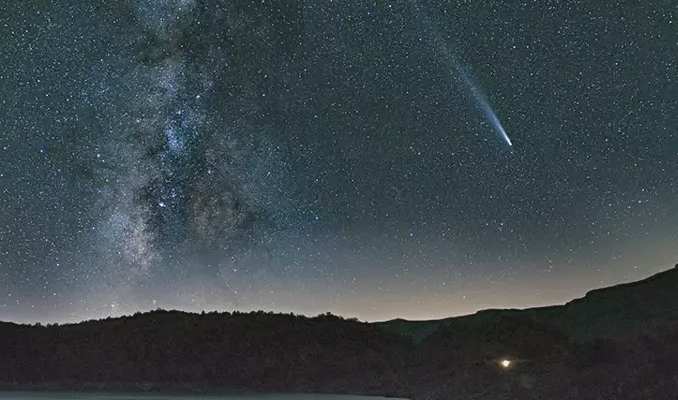 Atlas Kuyruklu Yıldızı, geniş kuyruk yapısı ve parlaklığı ile öne çıkan kuyruklu yıldızlardan biridir.