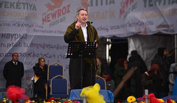 "Bugün özellikle Ankara'nın önünde tarihi bir fırsat var. Kürt meselesini çözen bir Türkiye bölgede güçlü bir aktör olur. Gelin geleceğimizi kaybetmeyelim. Geleceği kazanmak için demokratik bir zemini hep birlikte büyütelim. Geçmişin yaraları geleceğimizi daha fazla kanatmasın. Bu ülke 100 yıldır defalarca kanadı. Artık bu kanamayı durduralım. Hani hep soruyorlar ya ‘Kürtler ne istiyor’ diye. Kürtler Türkiye'de kimliğinin tanınmasını istiyor. Kürtler ana dilinde eğitim istiyor. Kürtler anayasal güvence istiyor. Kürtler yerel demokrasi istiyor. Kürtler eşit yurttaşlık istiyor. Kürtlerin talebi ayrılık değil, ortaklıktır, inkar değil, tanınmadır, lütuf değil, haktır. Kürtler yönetime ortak olmak istiyor. Kürtler artık devletle münazara değil müzakere yapmak istiyor. Şimdi sıra barış yasalarında, şimdi sıra hukuki güvencede, şimdi sıra devlette ve iktidardadır. Artık sözden yasaya, temenniden güvenceye, vaatten eyleme geçme zamanıdır. Cezaevindekiler artık özgür olmalıdır. Figenler, Selahattinler, Leylalar, Ayşeler ve binlerce tutsak özgür olmalı. Dağdakiler demokratik siyasete katılabilmeli. Sürgündekiler evlerine dönebilmelidir. Demokratik siyasete katılabilmelidir. Halkın iradesini gasbeden kayyımlar artık gitmelidir. Öcalan'ın statüsü ve çalışma koşulları yasal düzenleme ile teminat altına alınmalıdır. Öcalan'ın bu meydanda halkıyla buluşmasının önü artık açılmalıdır.”