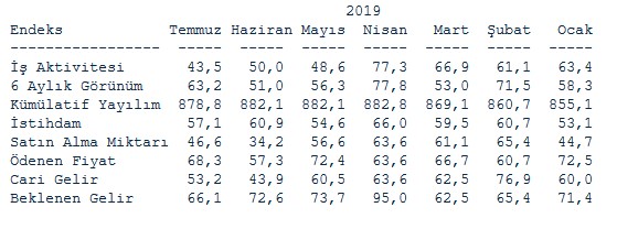Bir önceki ay endeks 50,0 puan seviyesinde bulunuyordu. Böylece 2016 Mayıs'ta görülen 37,2 puandan bu yana en düşük seviye görüldü. 6 Aylık görünüm endeksi ise 51,0 puandan 63,2 puana çıktı.