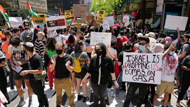 Göstericiler adına konuşan aktivist Lamis Deek, "Amerika'nın biz Filistinlilere yapılan soykırımı fonlamaktan vazgeçmesini istiyoruz. Bu uluslararası hukuka göre illegaldir. Uluslararası Suç Mahkemesi tarafından yapılan savaş suçları soruşturması esnasında bile İsrail askeri müdahaleye devam edebiliyor. Uluslararası toplumu umursamıyor" dedi.