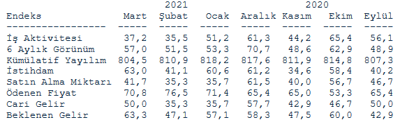 New York Arz Yönetimi Enstitüsü(ISM)'nün yaptığı açıklamaya göre, New York'taki iş dünyası görünümünü ölçen New York ISM iş aktivitesi endeksi Mart'ta 35,5 puandan 37,2 puana çıktı. 6 Aylık görünüm endeksi ise 51,5 puandan 57,0 puana yükseldi. Ana endeksler ve alt grup endekslerinde veriler şu şekilde açıklandı: