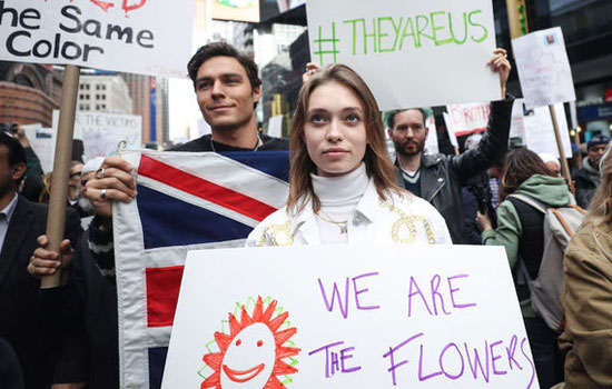 New York'ta Times Meydanında toplanan Müslüman, Hristiyan ve Yahudi toplumundan göstericiler, İslamofobi karşıtı protesto düzenledi.