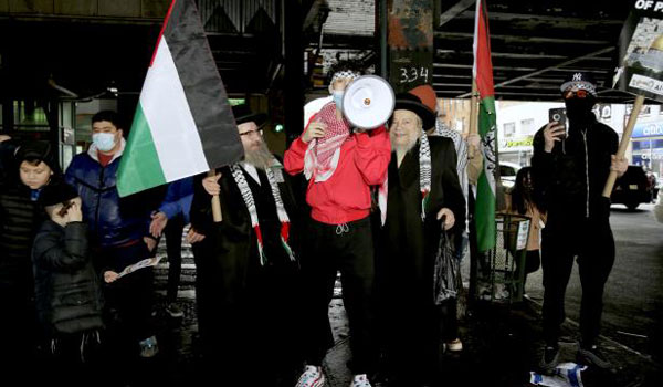 Brooklyn'de toplanan Ortodoks Yahudileri, İsrail'in Filistinlilere yönelik politikalarını ve İsrail ordusunu eleştiren sloganlar attı.