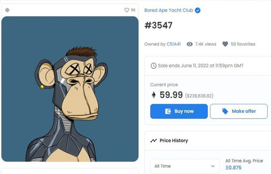 2021 Nisan’da başlayan “Bored Ape” projesi bilgisayar kodlarıyla oluşturulan sanat eserlerini kapsıyor. İlk dönemde 0.08 ethereum yani yaklaşık 300 dolara satılan eserler, bugün ise 50 ethereum yani 200 bin dolar ve üzerine satılıyor.