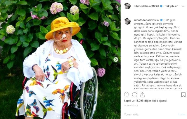 Annesinin yoğun bakımdan sağlıklı çıkması için dostlarında sürekli dua isteyen Nihat Odabaşı, acı haberi de sosyal medya hesabından duyurdu. Odabaşı, paylaşımında şunları yazdı: "Güle güle annem... Sana git artık demekle gittiğini bilmek çok başkaymış… Dün daha akıllı daha sağlamdım... Şimdi uçup gitti hepsi. İki kolum iki yanma düştü… Bir şeyler koptu gitti...