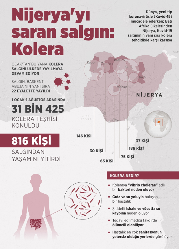 İhekweazu, ülkenin başkenti Abuja'nın yanı sıra 22 eyalette 1 Ocak-1 Ağustos döneminde 31 bin 425 kolera teşhisi konulduğunu belirterek, 816 kişinin ise salgından yaşamını yitirdiğini aktardı.