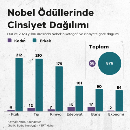 Son 120 yılda ödül sahiplerine verilen 609 Nobel ödülünden sadece 58 kadın ödül aldı.