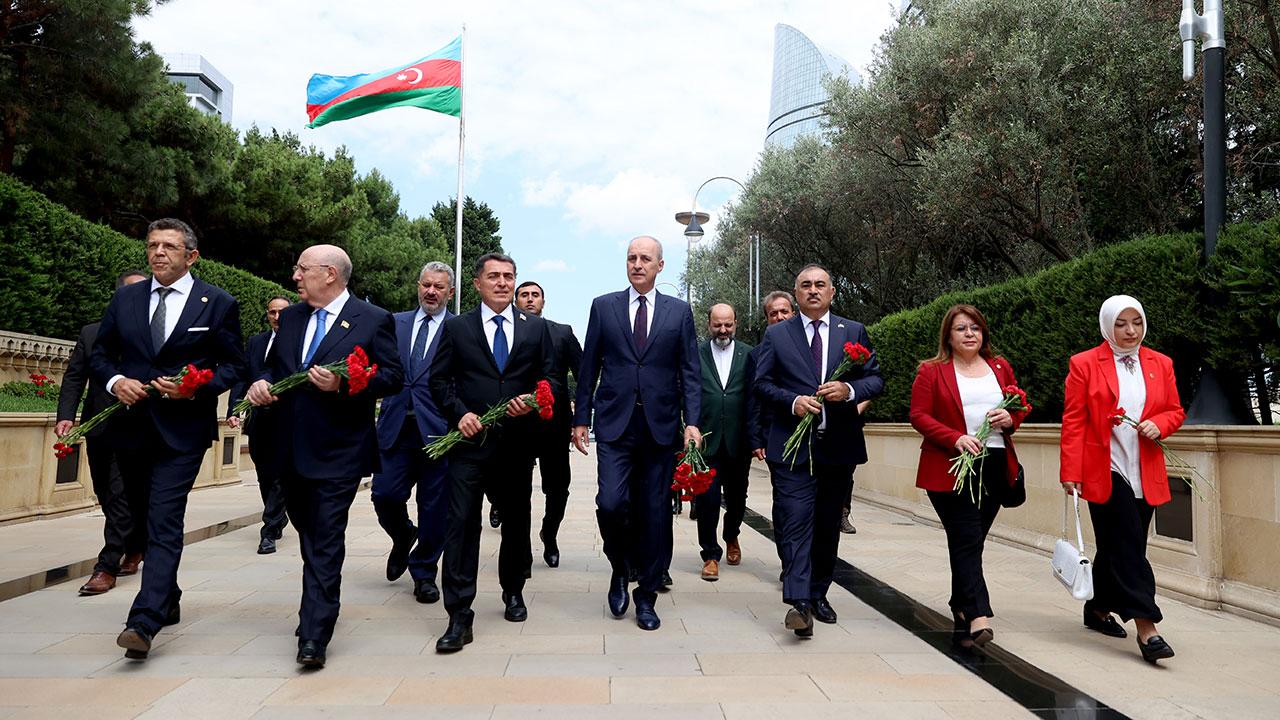 Türkiye Büyük Millet Meclisi (TBMM) Başkanı Numan Kurtulmuş, resmi temaslar için bulunduğu Azerbaycan'da şehitlikleri ziyaret etti. Kurtulmuş ve beraberindeki parlamento heyeti önce merhum Cumhurbaşkanı Haydar Aliyev'in mezarına çelenk bıraktı.