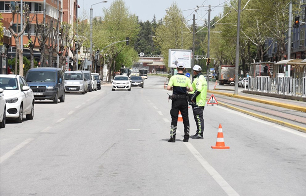 Kısıtlama nedeniyle sokak ve caddeler boş kalırken, polis ekiplerince tüm kavşaklarda oluşturulan uygulama noktalarında araçlar ve kişiler tek tek kontrol ediyor.