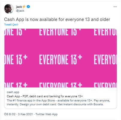Cash App artık gençlere odaklanıyor. Perşembe günü Dorsey, 13 yaş ve üzerindeki herkesin artık eşler arası işlem yapmak için Cash App'i kullanabileceğini duyuran bir tweet attı. Gençlere Bitcoin işlem imkanı sunmak, uygulamayı Apple Cash ve Venmo dahil olmak üzere diğer alternatiflerden ayıracaktır.
