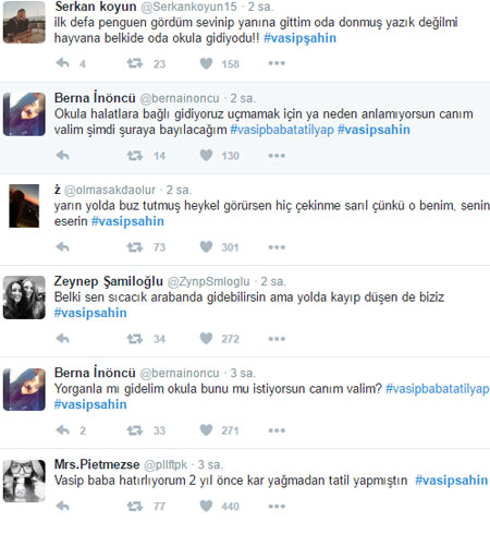"#vasipsahin Az önce dışarıda gezen bir grup penguen gördüm yani bence tatil olmalı."