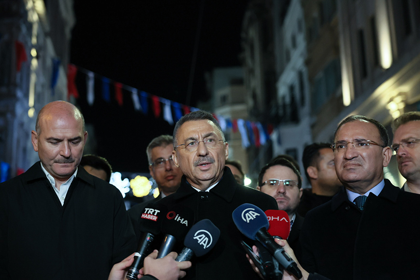 Cumhurbaşkanı Yardımcısı Fuat Oktay, İçişleri Bakanı Süleyman Soylu ve Adalet Bakanı Bekir Bozdağ ile Beyoğlu İstiklal Caddesi'nde patlamanın yaşandığı alanda incelemelerde bulundu.