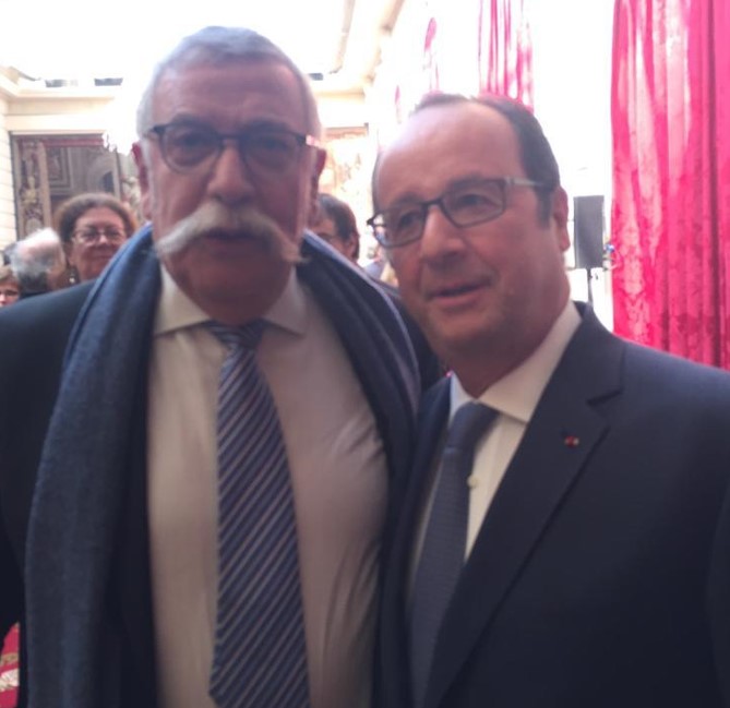 Nesim Fintz ve Fransa Cumhurbaşkanı François Hollande birlikte.. Yer, Elysee Sarayı...