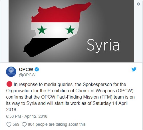 Geçtiğimiz Cuma günü, Kimyasal Silahların Yasaklanması Örgütü’nden 9 kişilik uzman heyet, başkent Şam'a ulaşmış ancak güvenlik sebebiyle heyetin kimyasal saldırı düzenlendiği iddia edilen Duma'ya girişine izin verilmemişti.